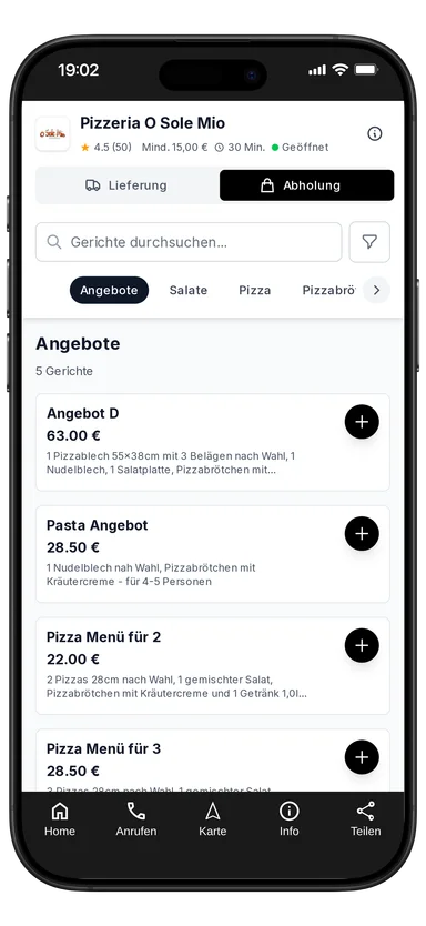 Pizza Menü für 2